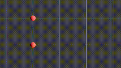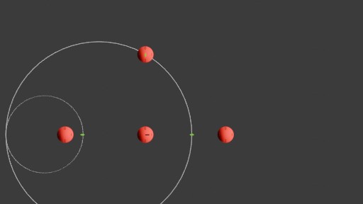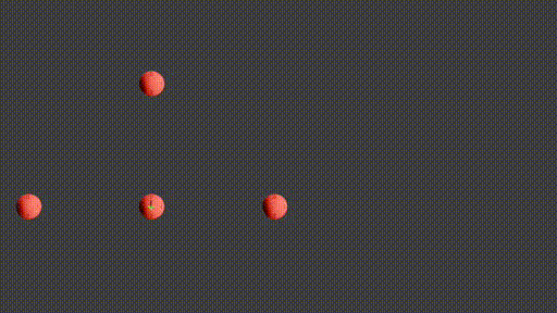 Au bout d'une seconde, le rayon du haut a atteint sa cible, celui de droite n'a pas encore atteint la sienne, celui de gauche est déjà en train de revenir.