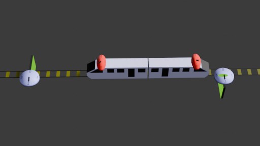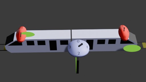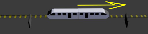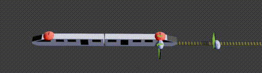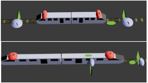 - Au moment où la tête du train arrive à la porte d'entrée du tunnel, l'horloge rouge marque 0, l'horloge bleue aussi et la porte est ouverte.