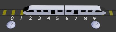 Sur cette illustration, la tête du train approche du zéro de mon échelle de mesure. Je ne peux pas encore mesurer sa longueur.