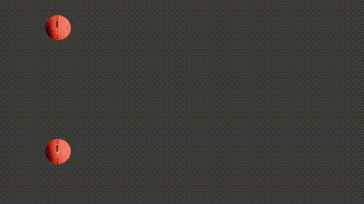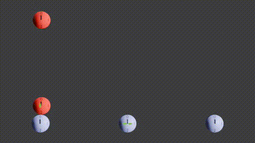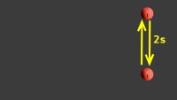 Nous allons maintenant retirer les horloges bleues. Nous voici livrés à nous-mêmes dans l'immensité du vide spatial. Plus aucun point de repère en dehors de nous. Tout ce que nous pouvons dire c'est que les deux horloges rouges sont immobiles l'une par rapport à l'autre. La lumière met toujours une seconde à aller de l'une à l'autre.