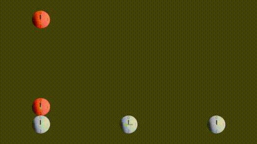 Gif animé d'illustration du phénomène de ralentissement des horloges en relativité restreinte.