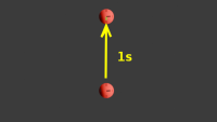 Nous allons maintenant retirer les horloges bleues. Nous voici livrés à nous-mêmes dans l'immensité du vide spatial. Plus aucun point de repère en dehors de nous. Tout ce que nous pouvons dire c'est que les deux horloges rouges sont immobiles l'une par rapport à l'autre. La lumière met toujours une seconde à aller de l'une à l'autre.